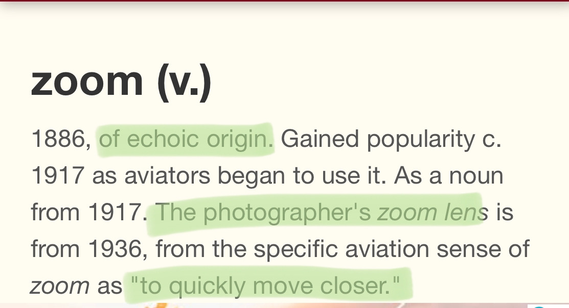 사실 zoom은 소리를 흉내낸 의성어입니다.