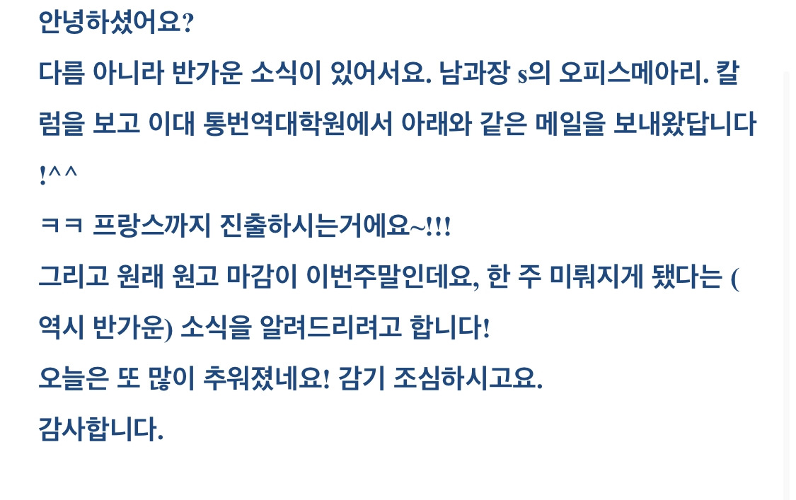 기사가 나간 다음주, 뜻밖의 연락을 받았습니다.