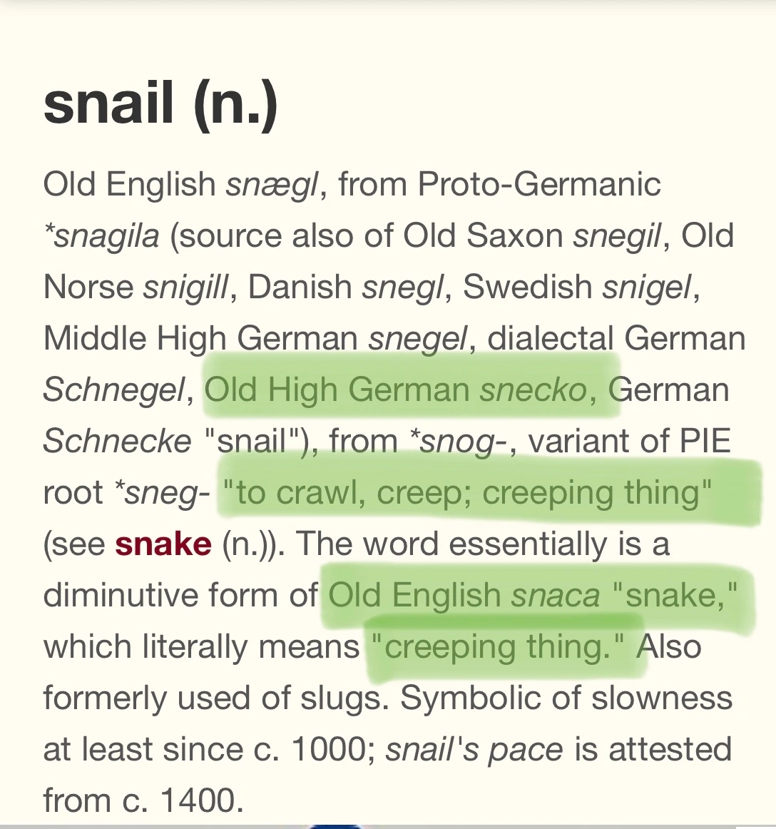 게르만어 schenecke, 고대영어 snaca 등에서 왔군요.