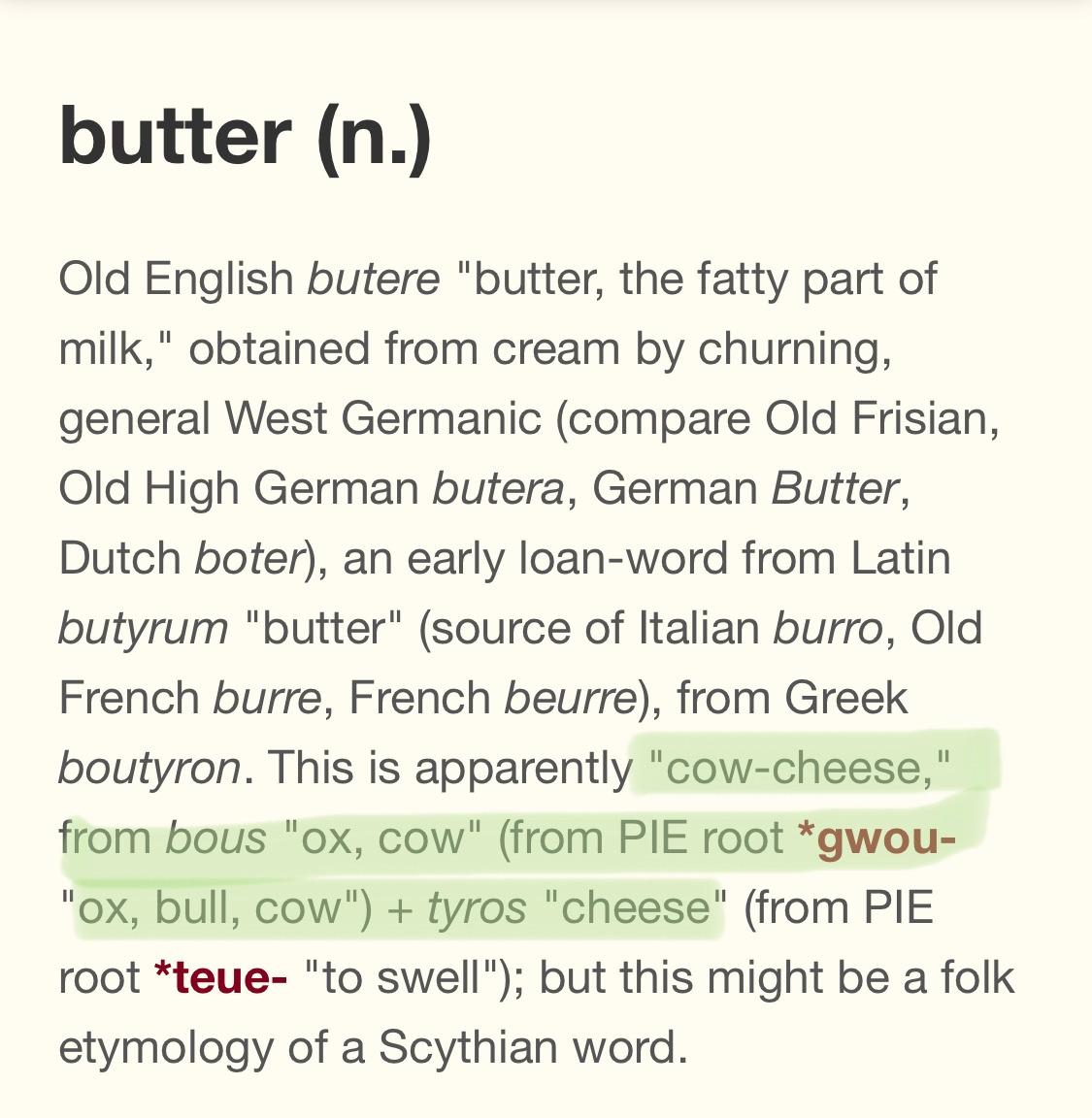 *버터는 그리스어 boutyron에서 왔어요.