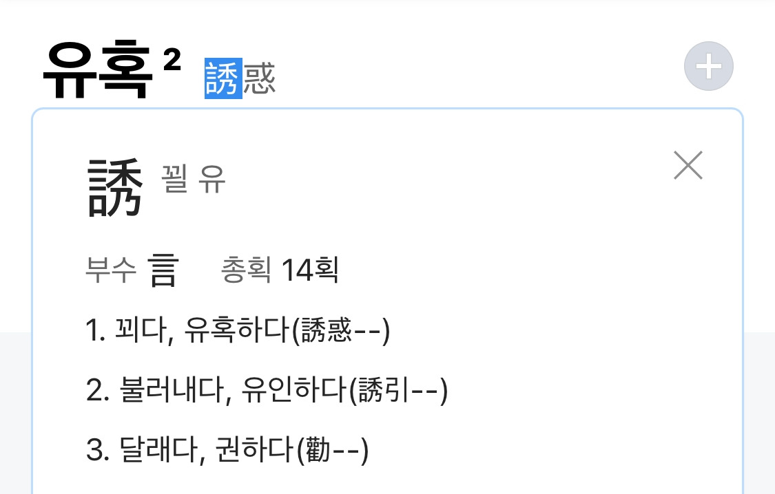 유혹(誘惑)의 한자는 ‘꾈 유’에 ‘헤맬 혹’입니다.