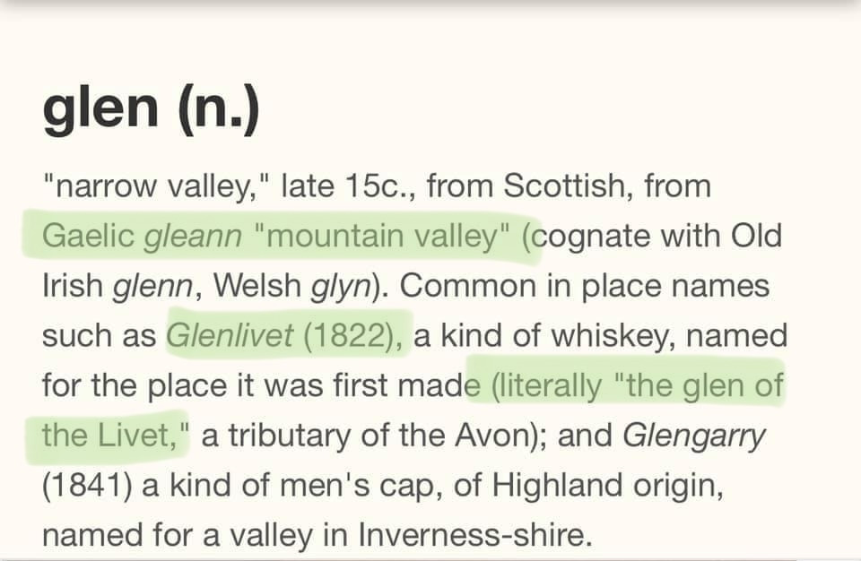 게일어(Gaelic) glenn은 ‘산의 계곡(溪谷)’을 의미했습니다.