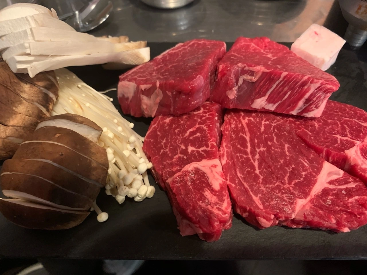 붉은 고기 사이에 박힌 하얀 지방이 빛나 보였나 봅니다.^^;;