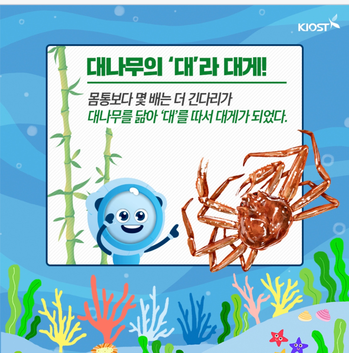 대게란 '대나무(bamboo) 모양의 다리를 가진 게'를 뜻합니다.