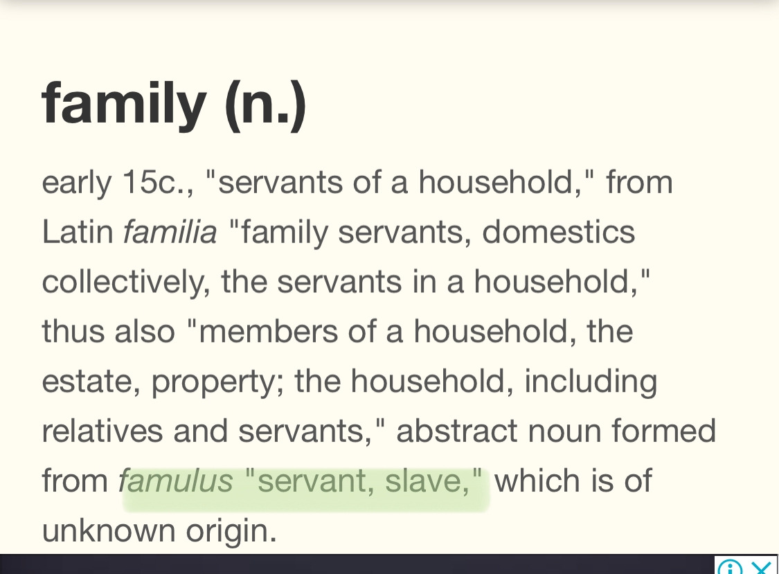 Family는 집안일을 해주던 하인(servant)이, 친척을 거쳐 가족으로 의미가 변화한 말입니다.