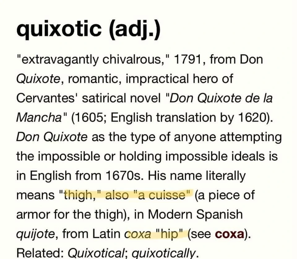Quixote는 'thigh', 'cuisse', 즉 '허벅지' 혹은 '허벅지 갑옷'입니다.