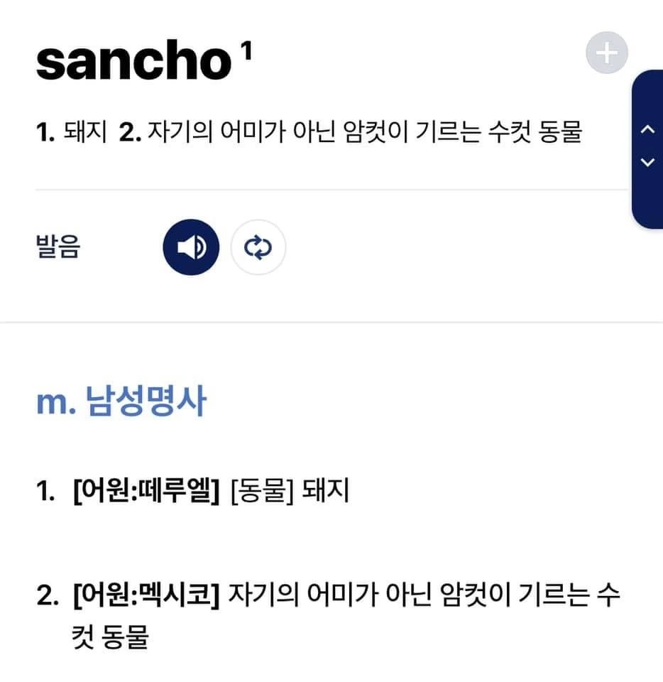 일반명사 sancho의 뜻은 돼지입니다.