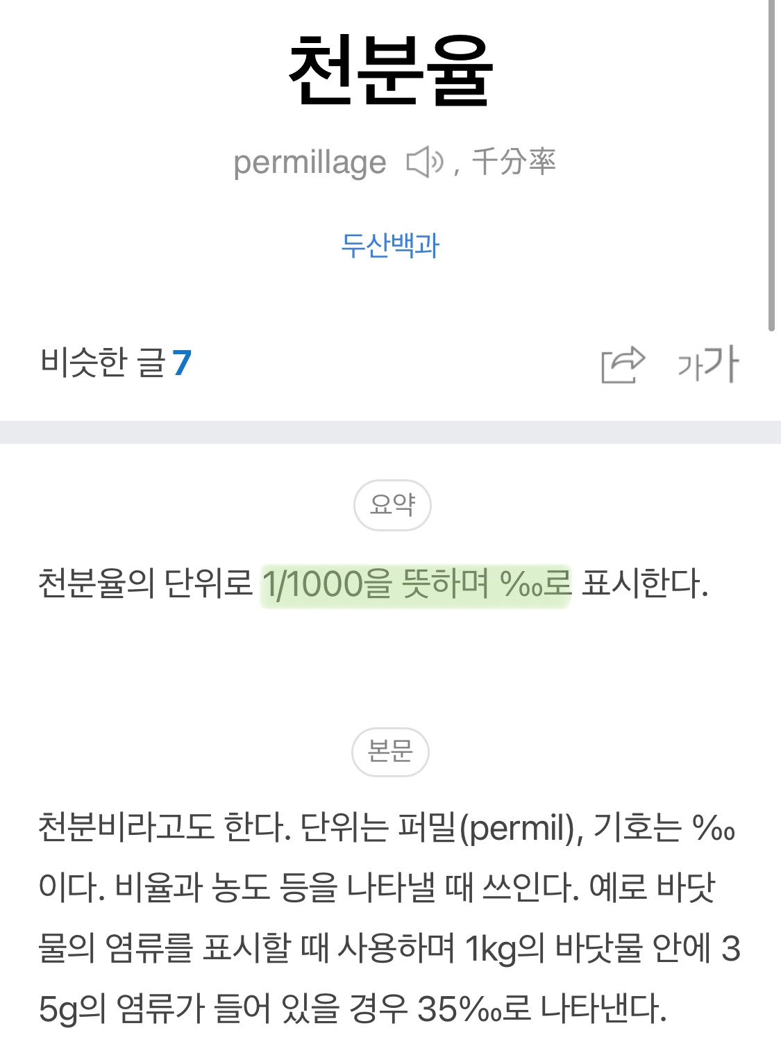3년 후, 중학교 2학년 과학시간에 우리는 바닷물의 염도를 계산하기 위해 천분율 즉 '퍼밀'에 대해 배우게 됐다.