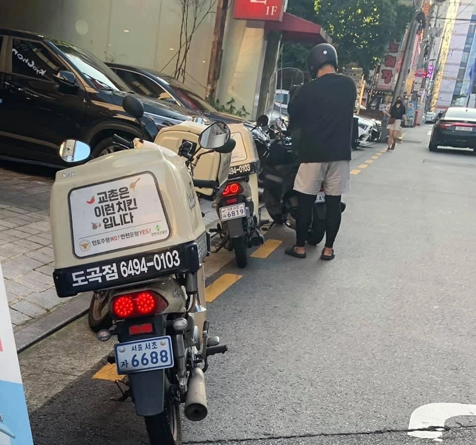 마침 오토바이는 바로 앞 치킨집에 섰습니다.