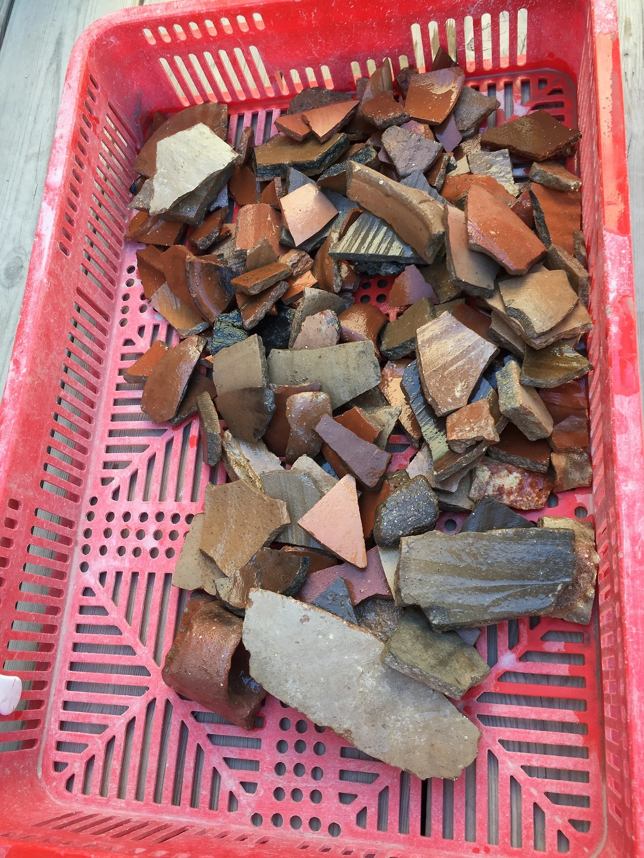 저 양동이 한가득 도자기조각이나 동물 뼈가 나온다