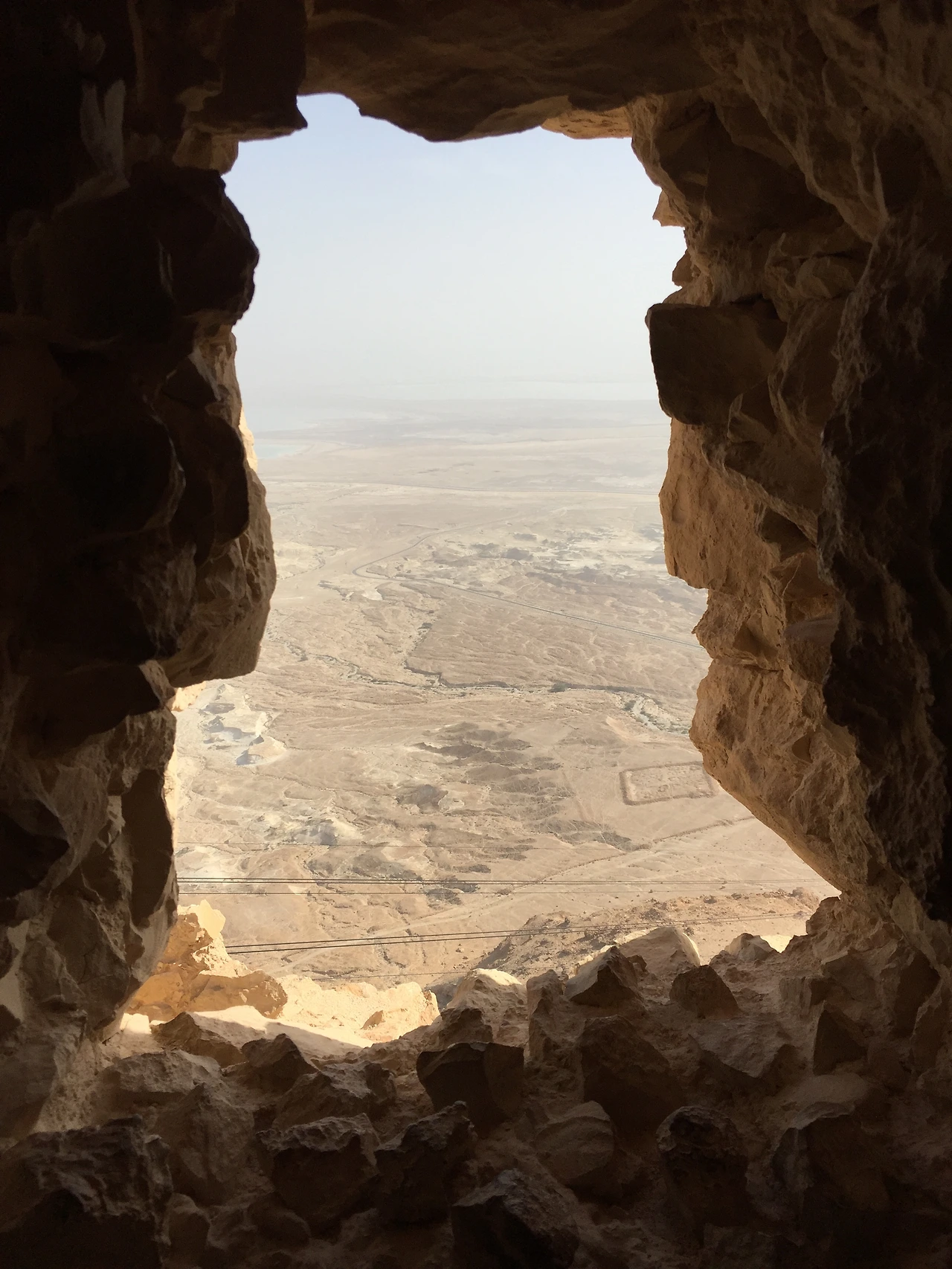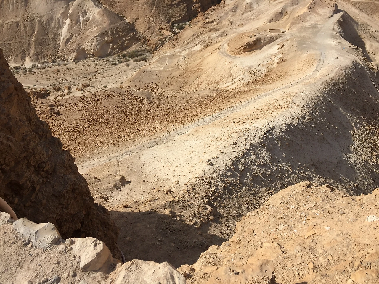 마사다 성벽 끄트머리로 나가 보니 로마 군인들이 마사다를 감시하기 위해 세운 망루가 바로 앞에 보였다. 가이드가 소리를 와아아아아 하고 지르니 메이리가 아-아-아- 하고 울렸다. 이렇게 소리가 잘 들리는 거리에서 로마 군인의 존재를 언제나 인식하며살았을 유대인들의 삶이 한없이 불안했겠다는 생각이 들었다.