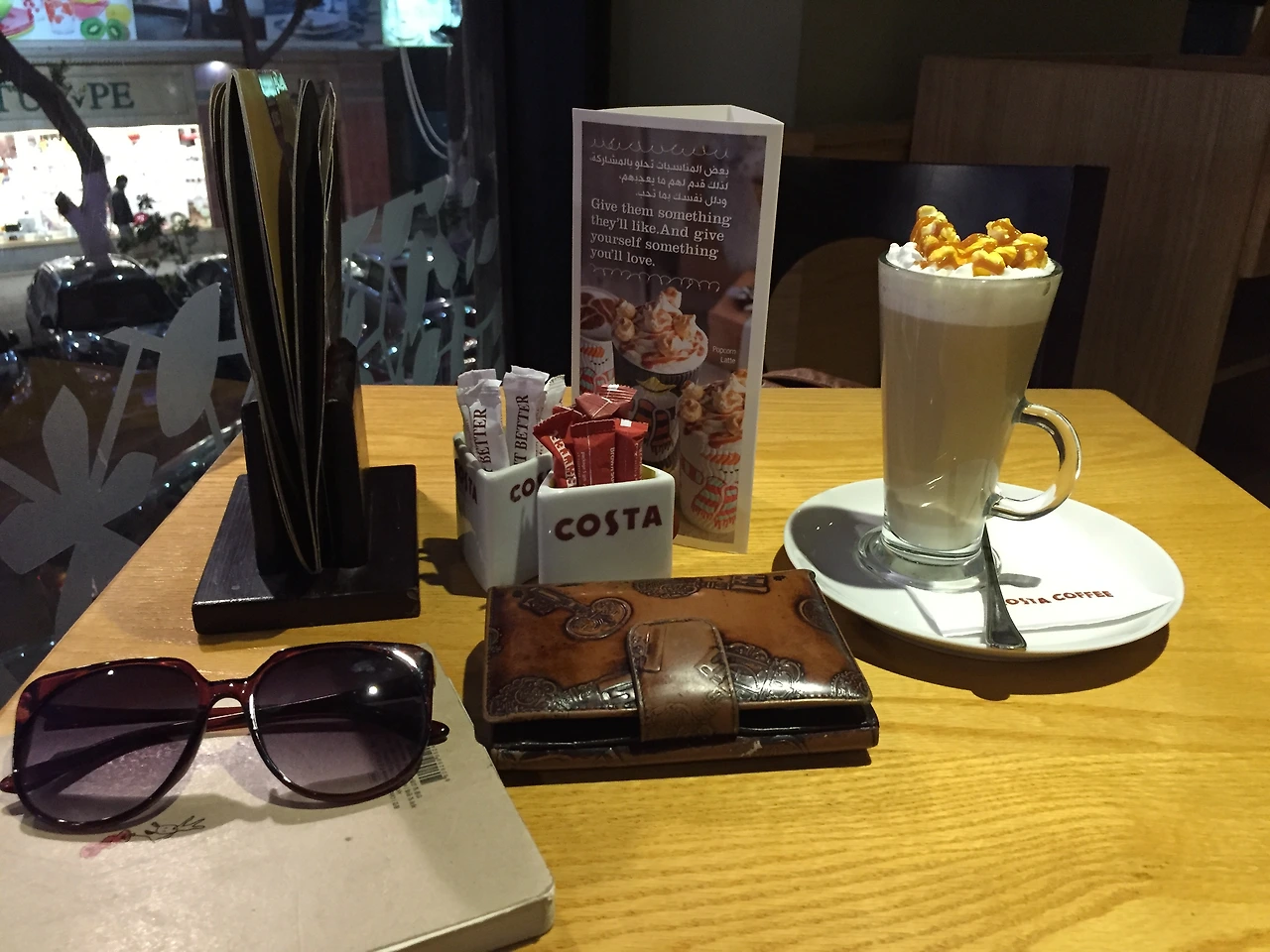 이왕이면 맛있는 음료를 시키려고 메뉴판을 훑었는데 팝콘라떼라는 게 있었다. 26 이집션 파운드. 한국 돈으로 2천원이 약간 안 되는 돈이니 여기 물가로는 꽤 값나가는 편이다.