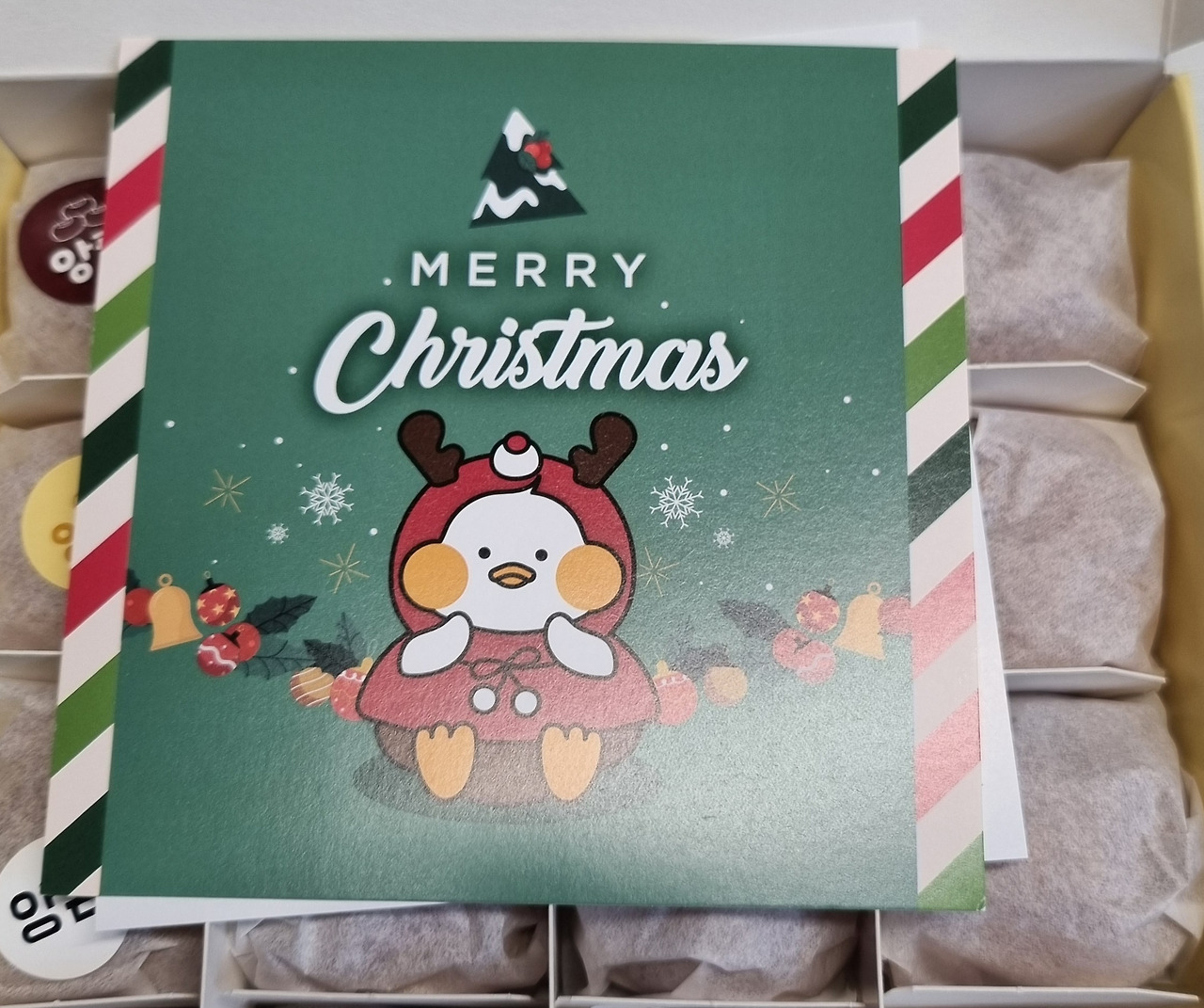 "맞아 나 호두과자 좋아해!" 하루의 피로가 순식간에 뭉개지는 순간이었다. 집에 와서 까보곤 크리스마스 카드가 있어 괜히 설렜던 기억이 났다.
