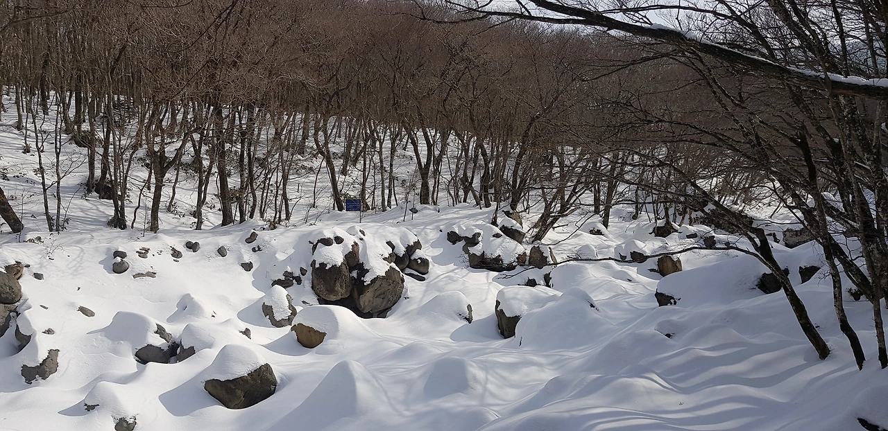 그렇게 한참을 가파른 길을 따라 올라가다 보니 나무 숲길이 아닌 짙은 하얀 눈으로 덮인 동산이 펼쳐진다. 등산을 하던 많은 사람들이 넋을 잃고 풍경을 바라보며 사진을 찍고 쉬어간다.