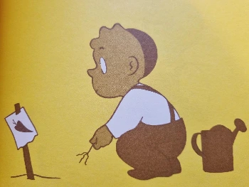 마지막 문장을 읽는데 '아!' 하는 외마디 외침이 나왔다. 아이에게는 씨앗을 심고, 물을 주고, 잡초를 뽑아주고 잘 돌봐주면 당근은 당연히 나와야 하는 것이었던 것이다. 아이에게 당근 씨앗을 심고 당근이 나오는 일은 너무나 당연한 일이기에 마지막 장면에서 별스럽지 않은 태연한 표정으로 당근을 가지고 가는 모습에 웃음이 나온다.