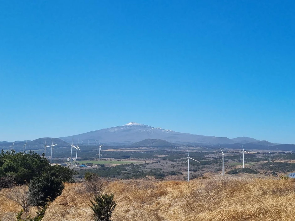 따라비 오름 정상에서 본 한라산 풍경