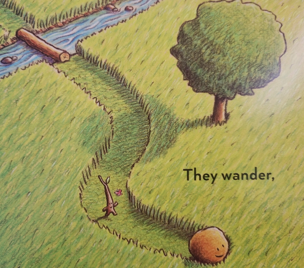 함께 돌아다니고, 탐험하고, 해안가에서 게으름을 피우던 어느 날, 천둥과 비바람이 치고 막대는 바람에 날려가 버린다. 돌멩이는 다시 혼자가 되어 밤낮으로 막대를 찾아다니다 늪에 빠진 막대기를 보고 구해주고 다시 둘은 함께 하게 되는 이야기다.