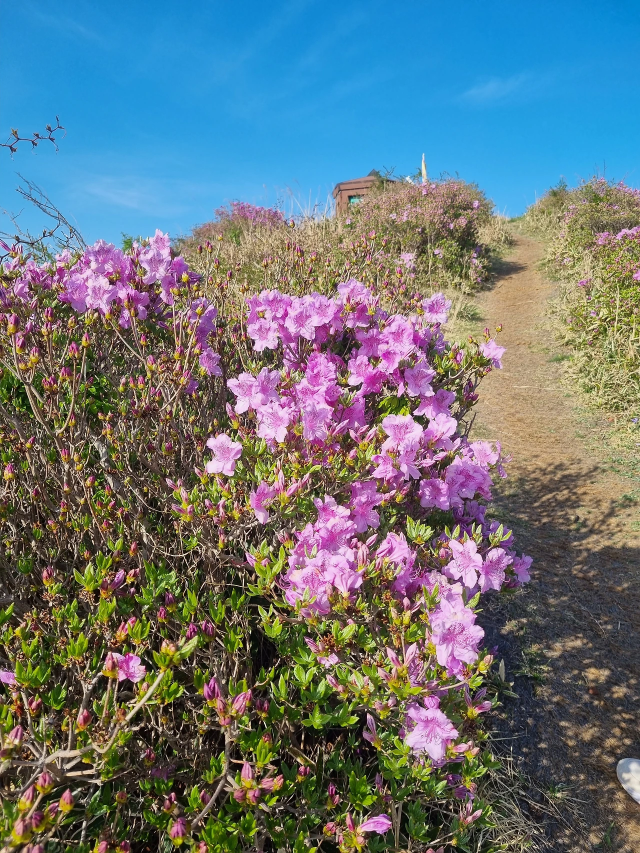 입구에만 풀꽃들처럼 조금 피었나 싶었는데 발걸음을 내딛으면 내딛을수록 철쭉꽃이 길가 양쪽 가득 피어 설레기까지 한다. 마치 그런 꽃들을 환대라도 하듯이 두 팔을 내뻗게 된다.