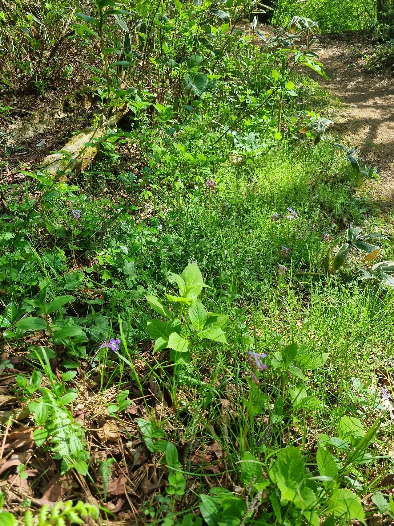 이리로 가면 뭐가 나오나 싶은 비좁은 외길을 운전해 가다 보면 어느새 바리메 오름 입구에 도착한다. 한걸음 내딛으려는 그 순간부터 오르막길이다. 한 명이 거닐 수 있는 좁은 길을 따라 계단의 너비와 높이가 다른 나무 계단들이 이따금 불규칙하게 놓여 있어 내딛는 발걸음이 조심스럽다. 이 좁은 계단길을 따라서 정상까지 가는 길에는 볼거리가 어느 오름보다도 많다. 한라산 등반 때나 보이던 제주조릿대가 무성하고, 봄이 되어 피어 있는 풀꽃들을 알아채느라 마음이 바쁘다. 오름 기슭에서 지난번 붉은오름에서 처음 보았던 낚시제비꽃이 곳곳에 있어 반갑다. 얼마나 올라갔을까 안 봤던 새로운 풀꽃 하나가 피어 있다.