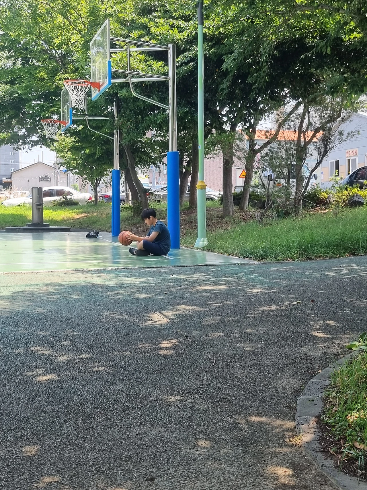 놀이터 근처에 다다르니 농구공 튀기는 소리가 저 멀리에서도 들린다. '탕' '탕'