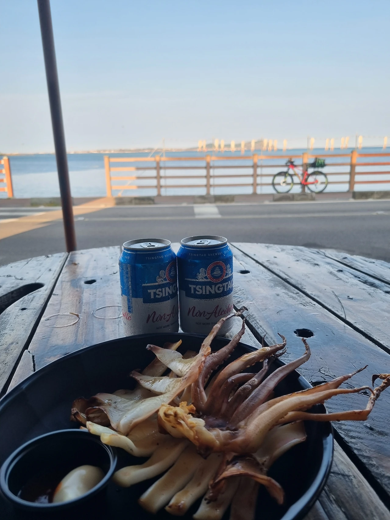 바다를 바라보며 낡은 의자에 앉아 바다를 바라보며 오징어 하나, 맥주 한잔 마시니 행복이 별거인가 싶다.