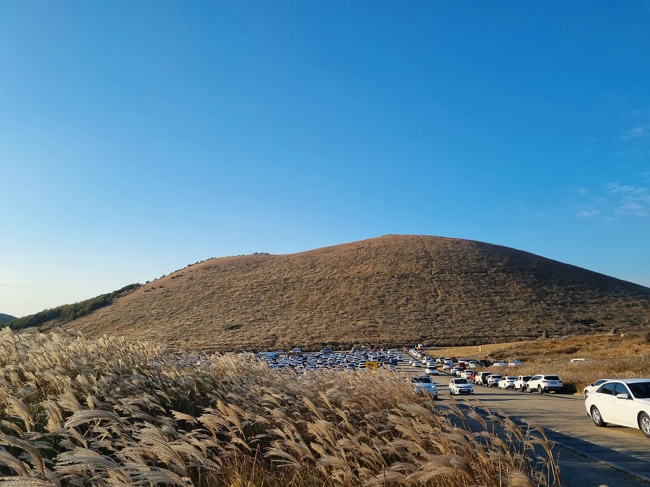 오름 입구부터 수많은 차들이 억새 축제에라도 온듯하고 사람, 차, 상인들이 만드는 북적북적한 분위기에 자연의 호젓함을 오롯이 느끼기에는 어렵다. 새별오름은 들판에 외롭게 밤하늘의 샛별과 같이 빛난다고 해서 새별오름이라고 할 정도로 들판 한가운데 홀로 우뚝 솟아있는데 그 모습이 마치 거대한 왕릉 같다. 가까이 갈수록 웅장하고 성스럽기까지 해서 수많은 인파 속에서도 금세 오름 속으로 빠져든다.