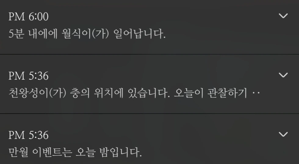 저녁을 준비하는데 갑자기 핸드폰이 요란하게 여러 차례 울린다. 확인을 하니 별 관찰 앱에서 오늘 개기월식이 있다는 알람이다.다른 때와 달리 알람이 연거푸 들어와서 이건 보통 이벤트가 아니구나 싶었다.