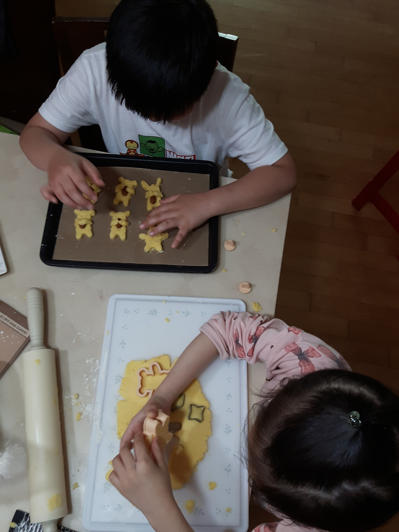 아이들과 집에서 쿠키를 만들면서 하루를 보내고,
