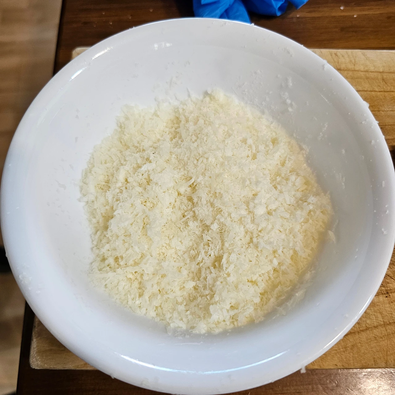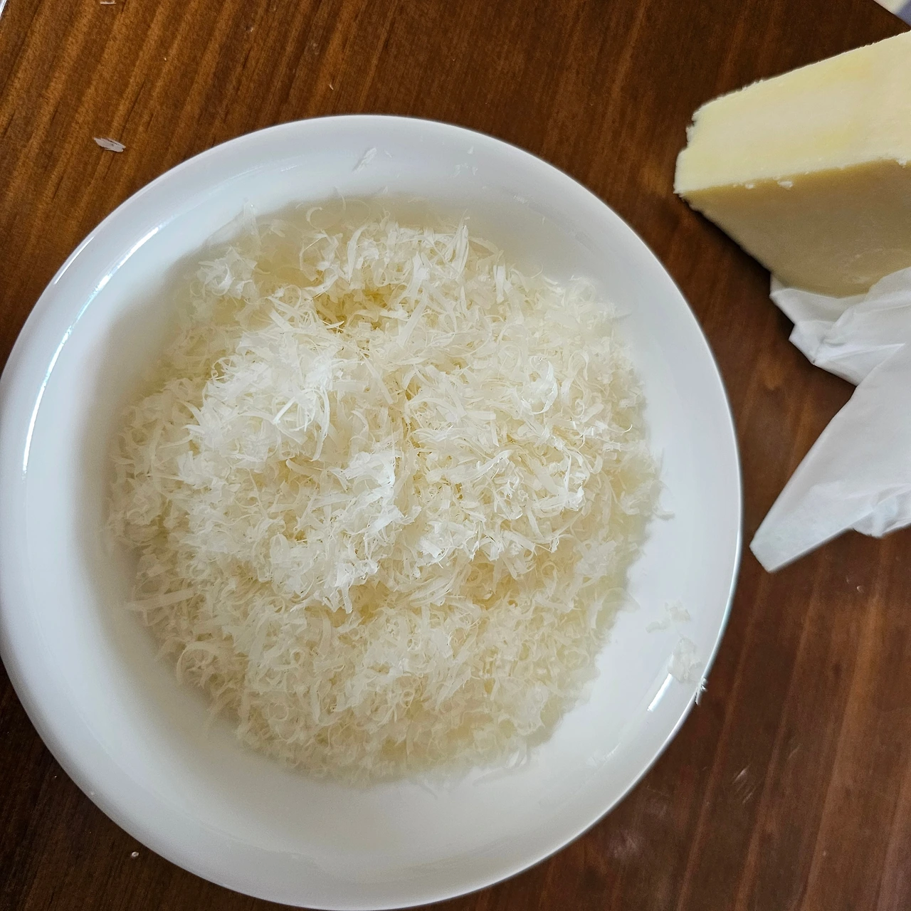 이번에도 카치오 에 페페 때 말씀드린 것처럼, 치즈는 반드시 곱고 균일한 가루 상태로 준비해 주셔야 합니다.