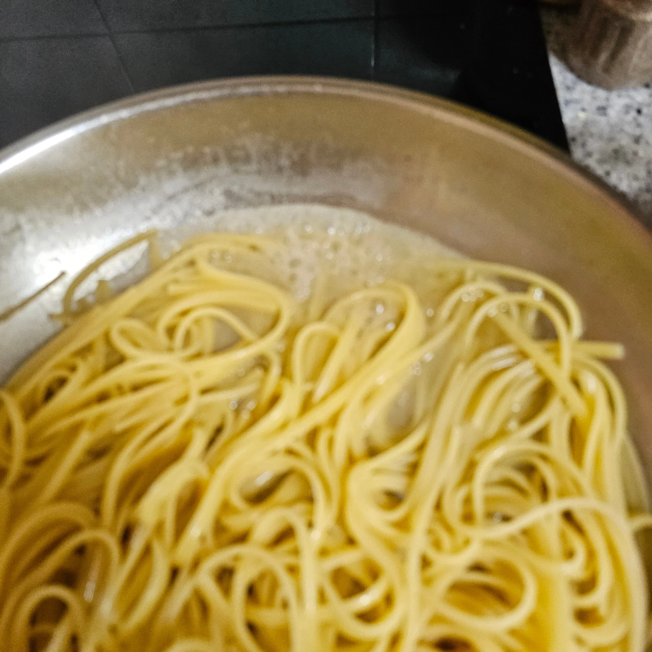 알 덴테 상태로 마무리해야 이후 소스와 합쳐지는 과정에서 딱 맞는 익힘이 됩니다.