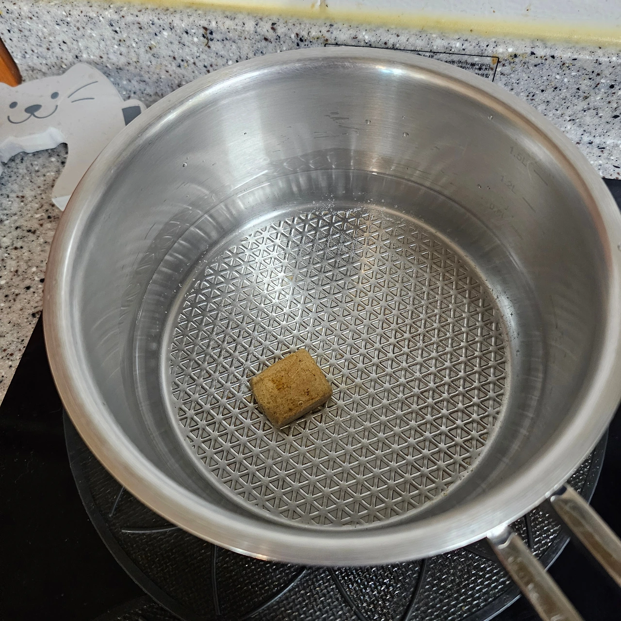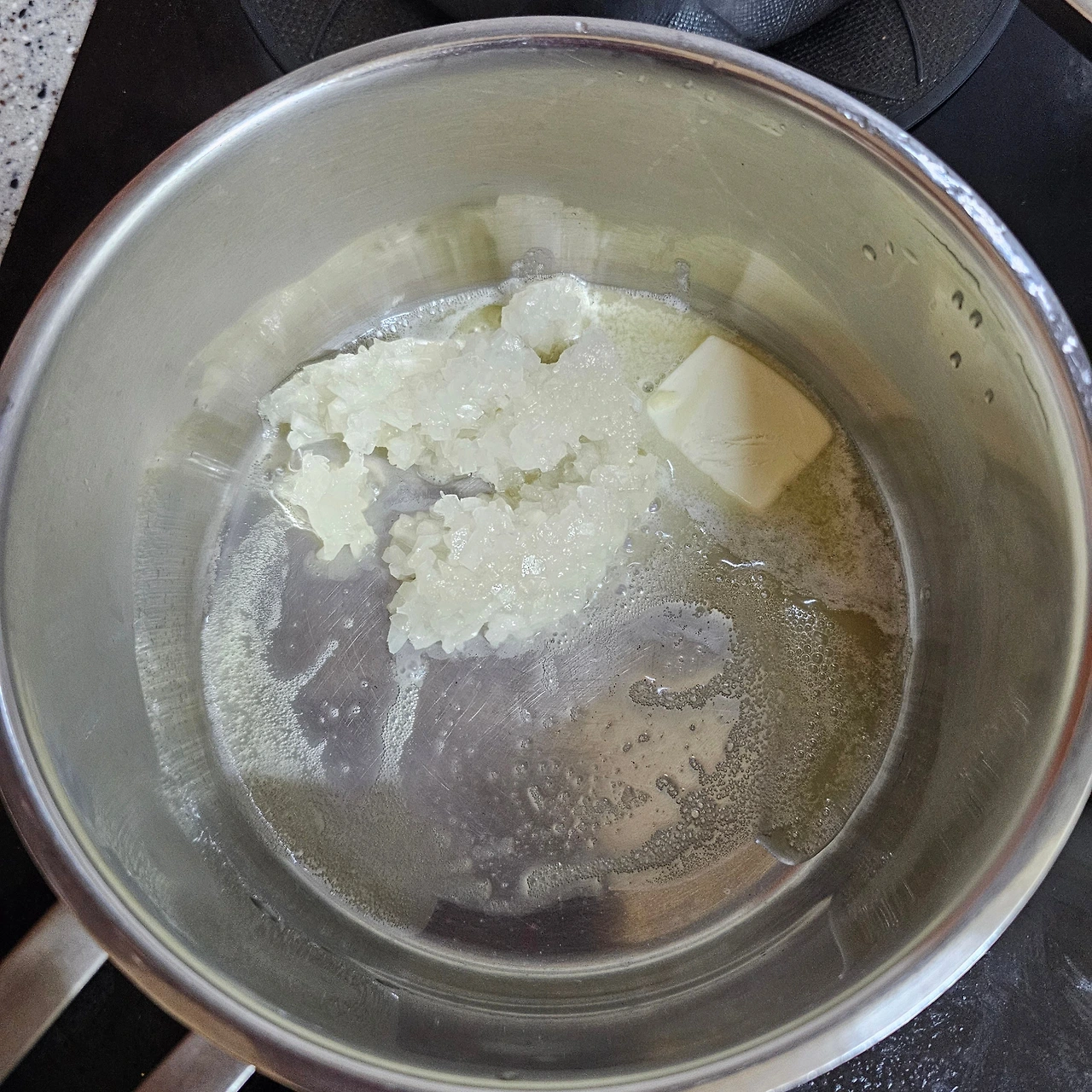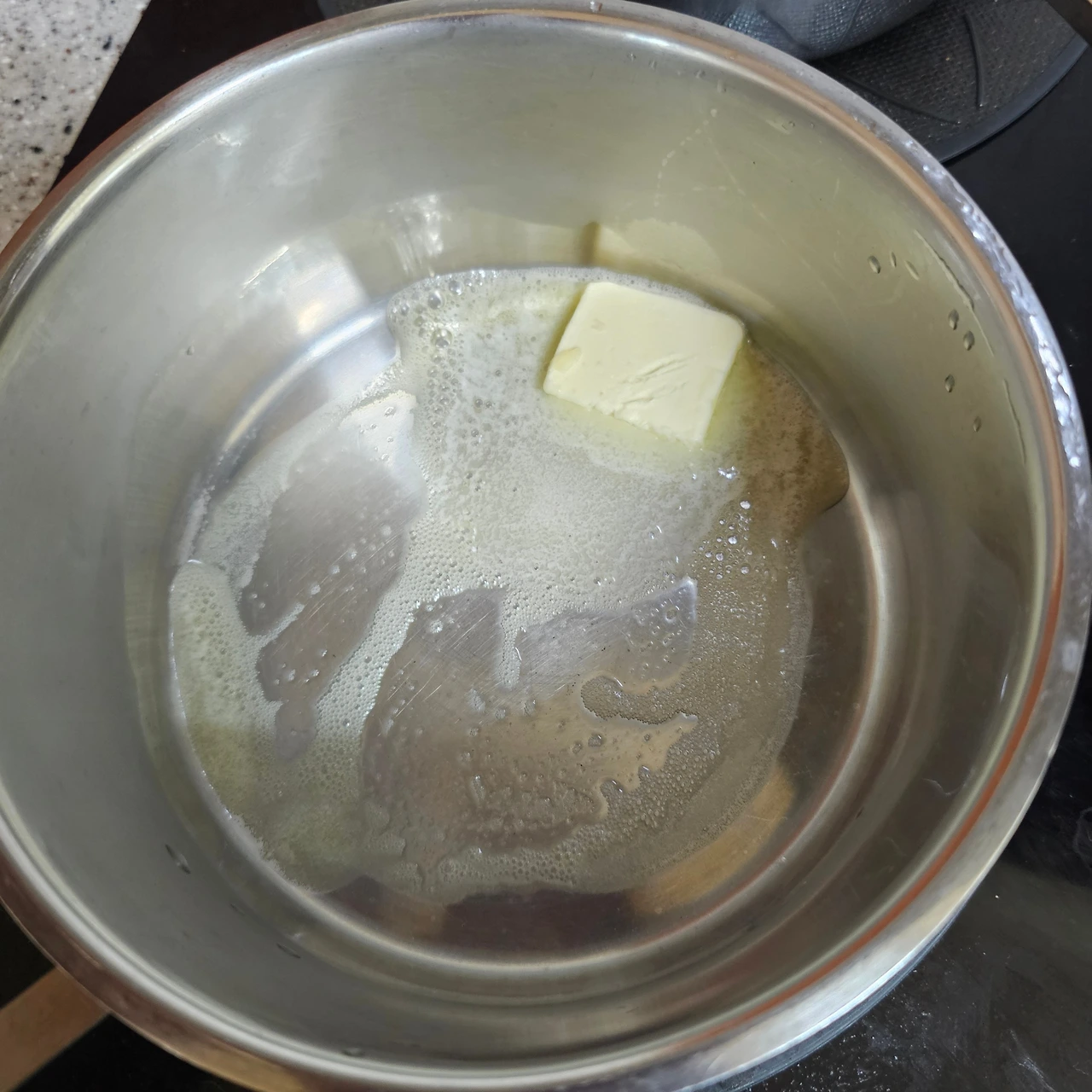 두꺼운 바닥의 냄비에 버터를 약불로 녹여줍니다.