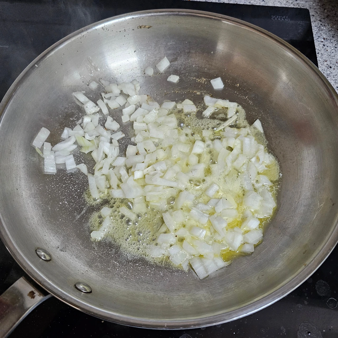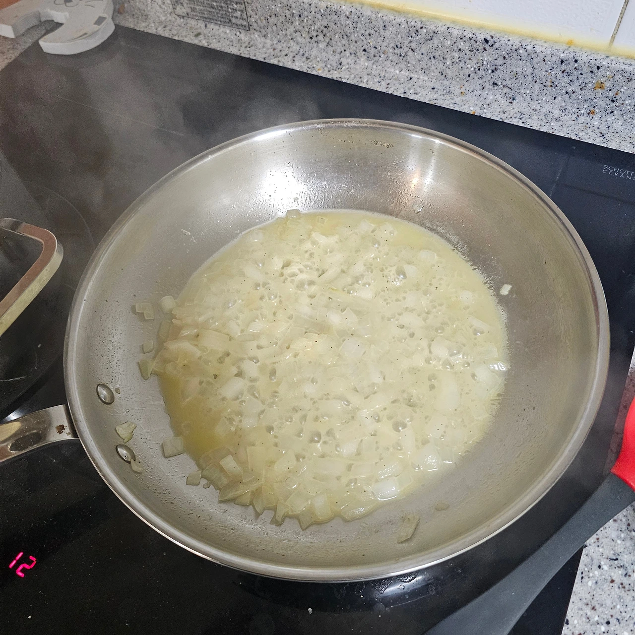 이제 마스카포네 소스의 바탕이 될 양파 볶기 단계입니다.