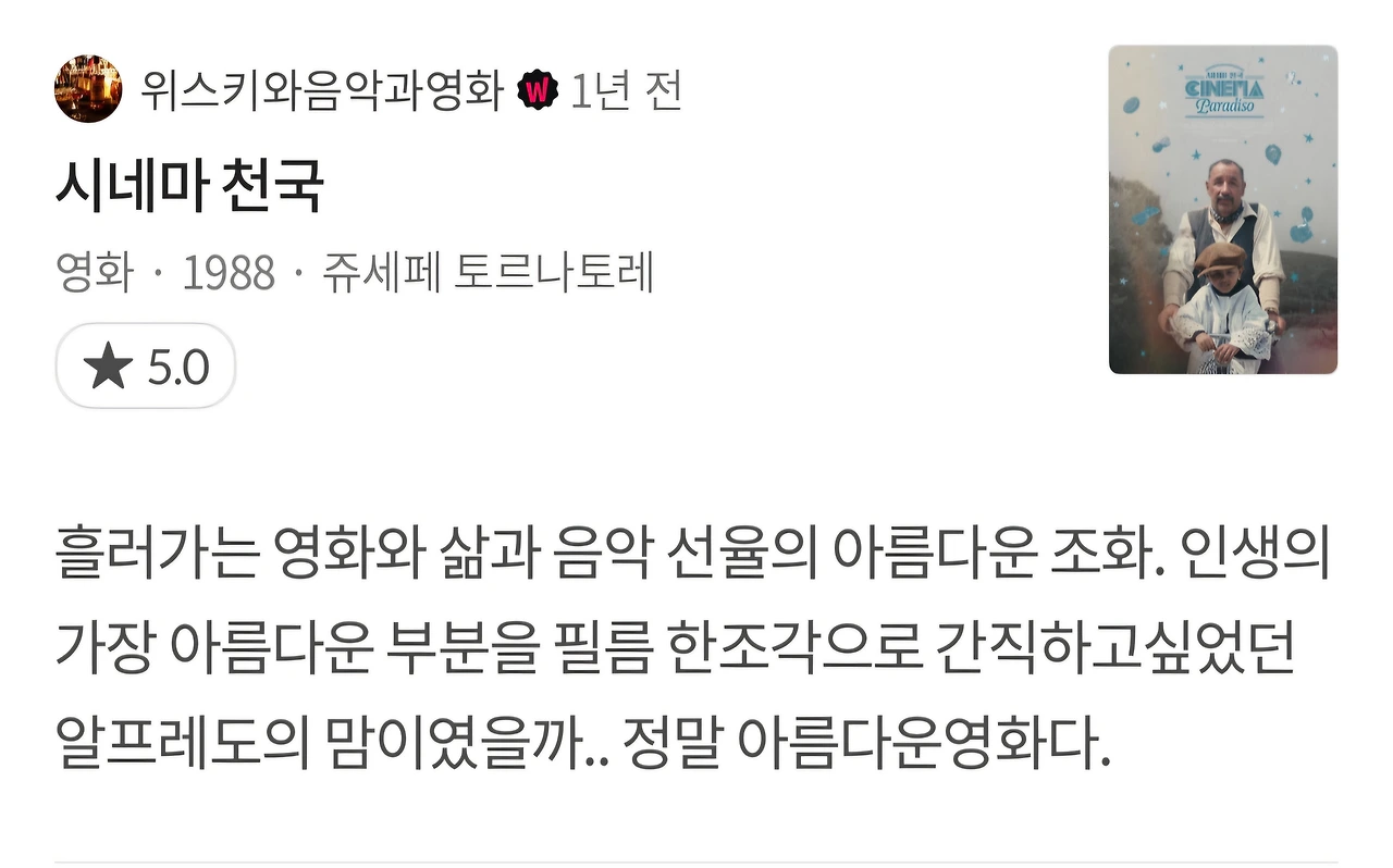 시네마 천국은 영화라는 언어가 어떻게 사람들의 감정을 연결하고, 세대를 이어주며, 사람들을 치유할 수 있는지를 보여주는 작품이다.