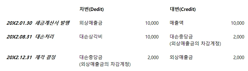 대손 회계처리를 하면 대손충당금이라는 외상매출금 차감 계정이 함께 장부에 잡히는데, 회사 입장에서는 이런 어정쩡한 금액이 달려있는 게 보기 싫을 수도 있습니다. 그래서 그냥 완전히 장부에서 제거해 버릴 수도 있는데 이것을 '제각'이라고 불러요. 그런데 이 제각 행위는 그냥 회사가 마음대로 할 수 있는 게 아닙니다. 정말 열심히 대금 회수를 위해 온갖 노력을 다 했는데, 받아낼 가능성이 전혀 없다 라는 것을 문서로 증명해야 합니다. 거래체에 꾸준히 독촉하며 보낸 메일은 물론이고, 채권추심업체에 의뢰해서 추심 활동을 했다는 증빙을 남길 수도 있습니다. 이런 갖은 노력을 다 했음에도 회수 가능성이 현저히 낮다고 인정받으면 비로소 제각을 할 수 있습니다. 그냥 못 받을 돈 날려 버리는 것일 뿐인데 왜 이렇게 깐깐하게 보냐고 물어보신다면, 자칫 배임 이슈와도 연결될 수 있기 때문입니다. 거래처의 이익을 위해 일부러 돈을 회수하지 않고 회사에 손실을 끼친 것 아니냐는, 주주나 과세당국의 관점에서는 그렇게 보일 수도 있을 테니까요. 여기까지 정리해 볼게요.