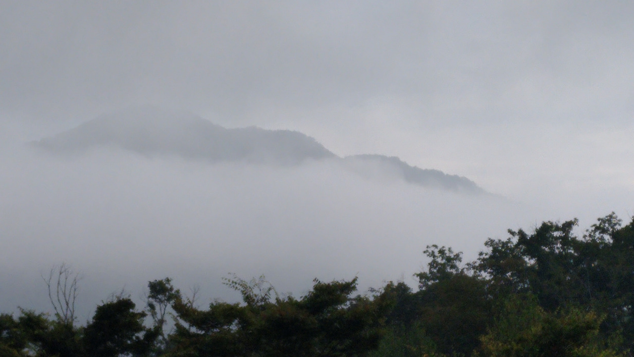 하얀 옷자락 산등성 휘감는