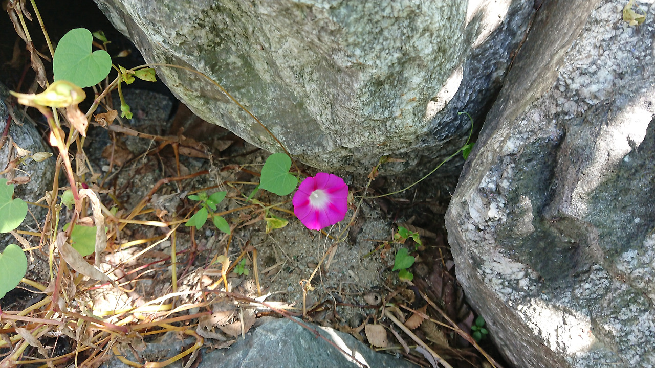 바위 밑에 꼭꼭 숨어 피었네