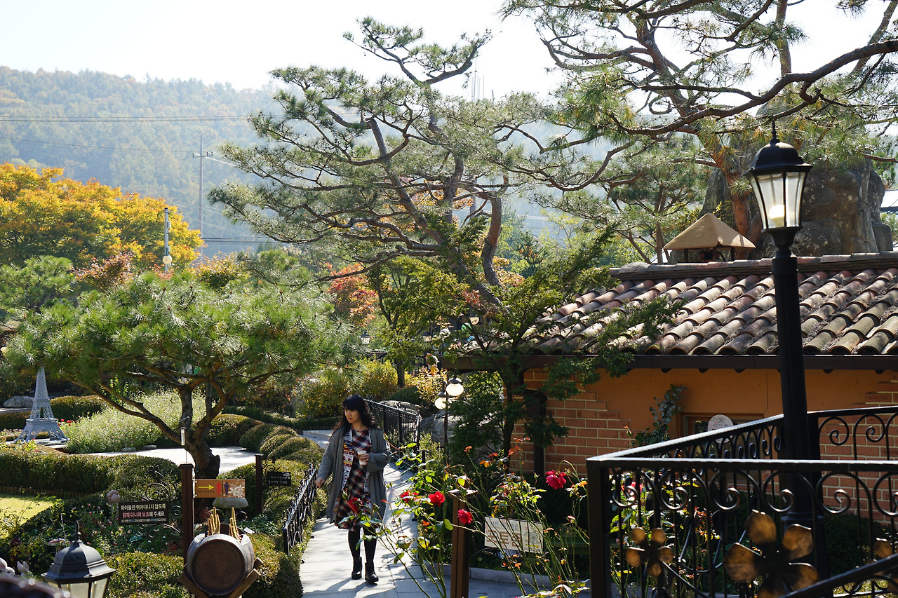 아름다운 풍경 펼쳐진 작은 정원 탁자에