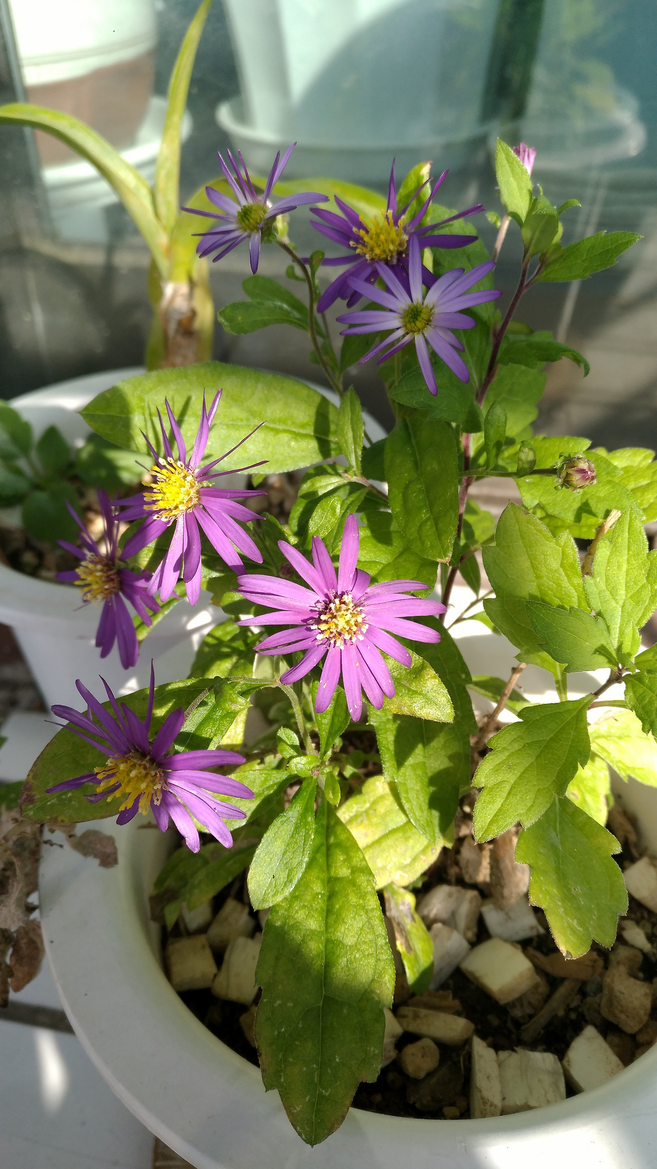 살며시 뜬 눈앞에 아기 국화 빙그레