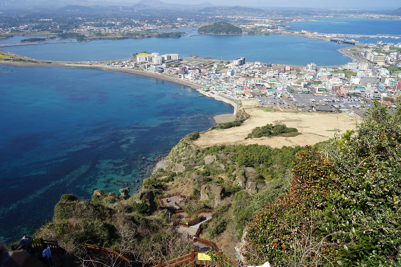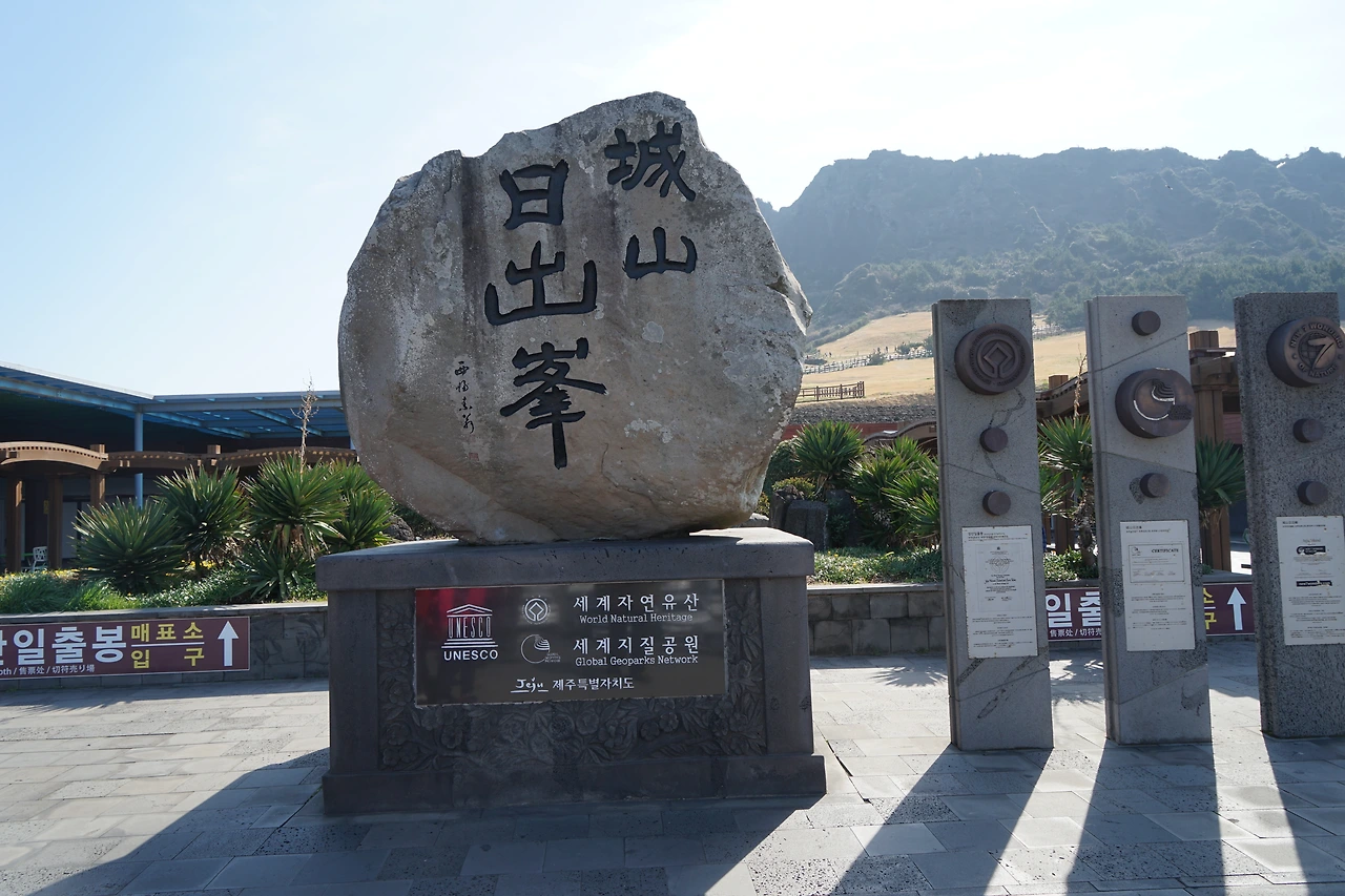 어딜 가나 마찬가지여서 성산일출봉을 오르는 길에도 계단도 모두 까만색이었다