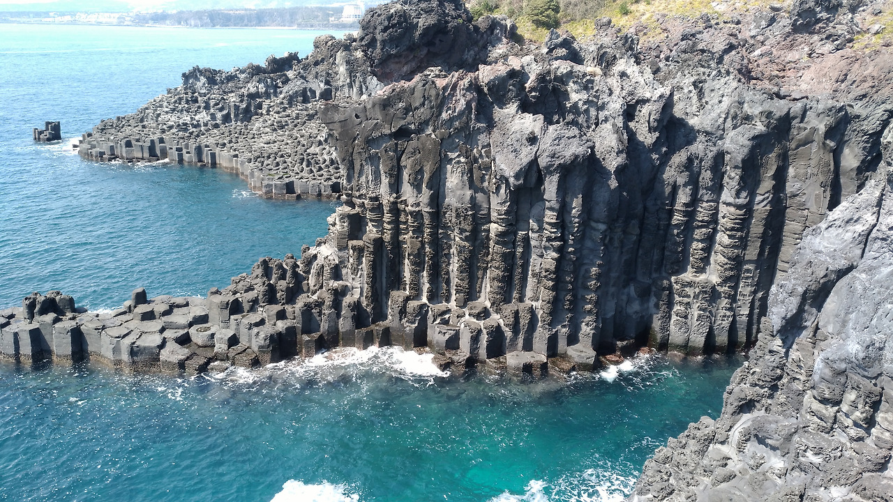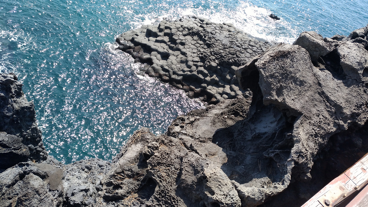 주상절리는 육각형의 모형을 만들어 붙여 세운 것 같은 까만 바위들이 바닥을 장식하고 해안절벽 바위는 면과 선으로 그 각이 곧고 높은 해안 바위로 장식되어 있는데 이 모두가 인간이 만들어 놓은 조각이 아닌 자연의 솜씨라는 것이 믿어지지 않을 것 같았다