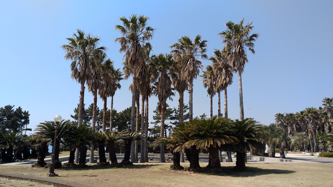 주상절리와 아쉬움을 뒤로하고 출구로 나오니 중문 관광단지의 정원이 있었는데 몇 개의 돌 하르방을 제외하면 여기가 제주가 아닌 먼 열대의 나라에 여행객이 된 느낌이었다