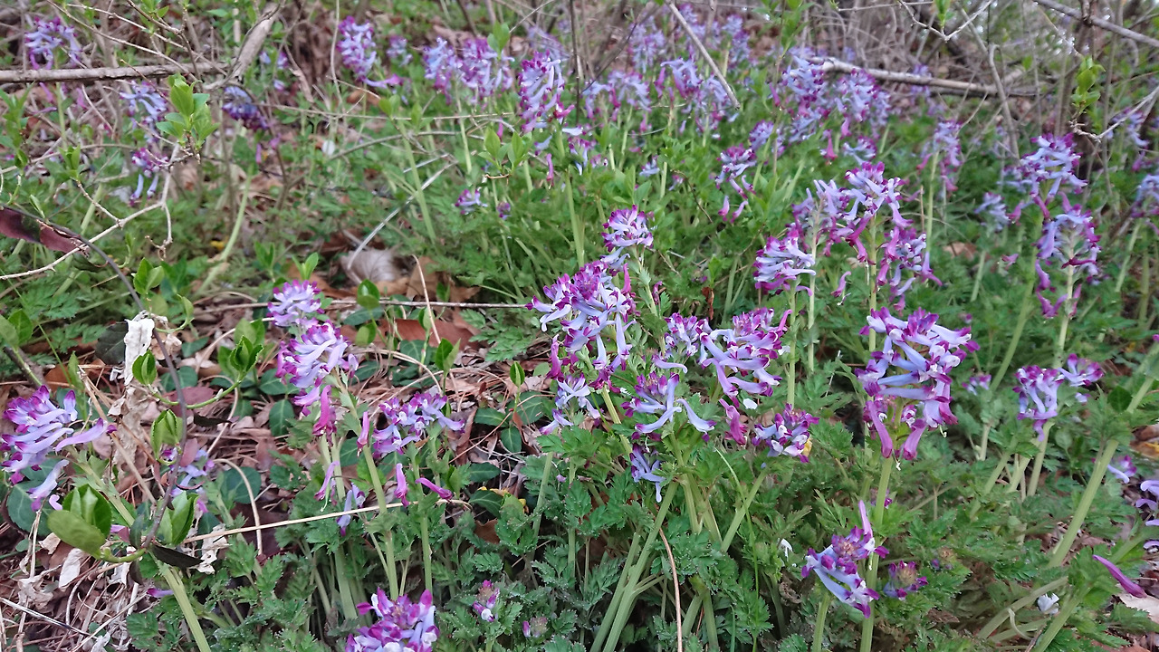 잔잔한 보랏빛 현호색 꽃