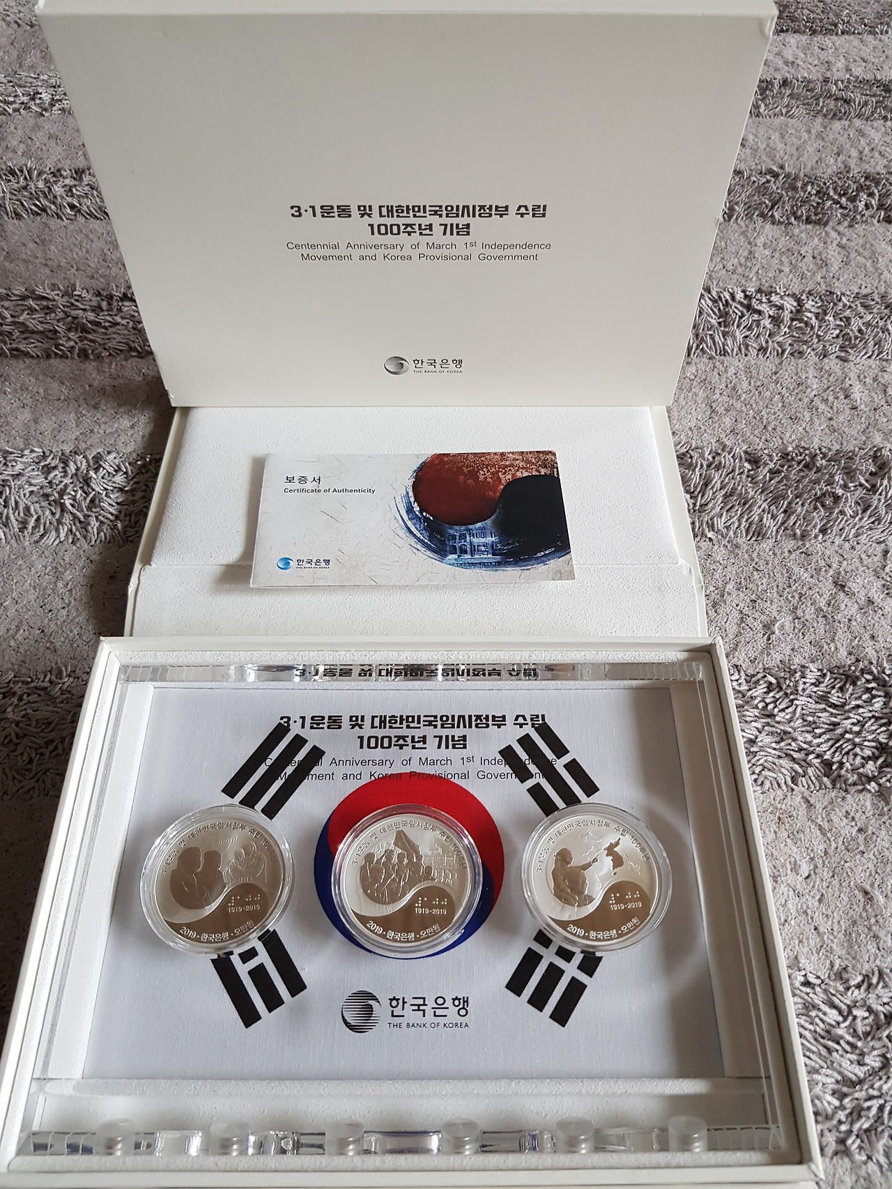 2019년 3.1 운동 100주년 패속에 들어간 세 개의 기념주화 들여다보며 둘이서 가만히 하는 말 왜?