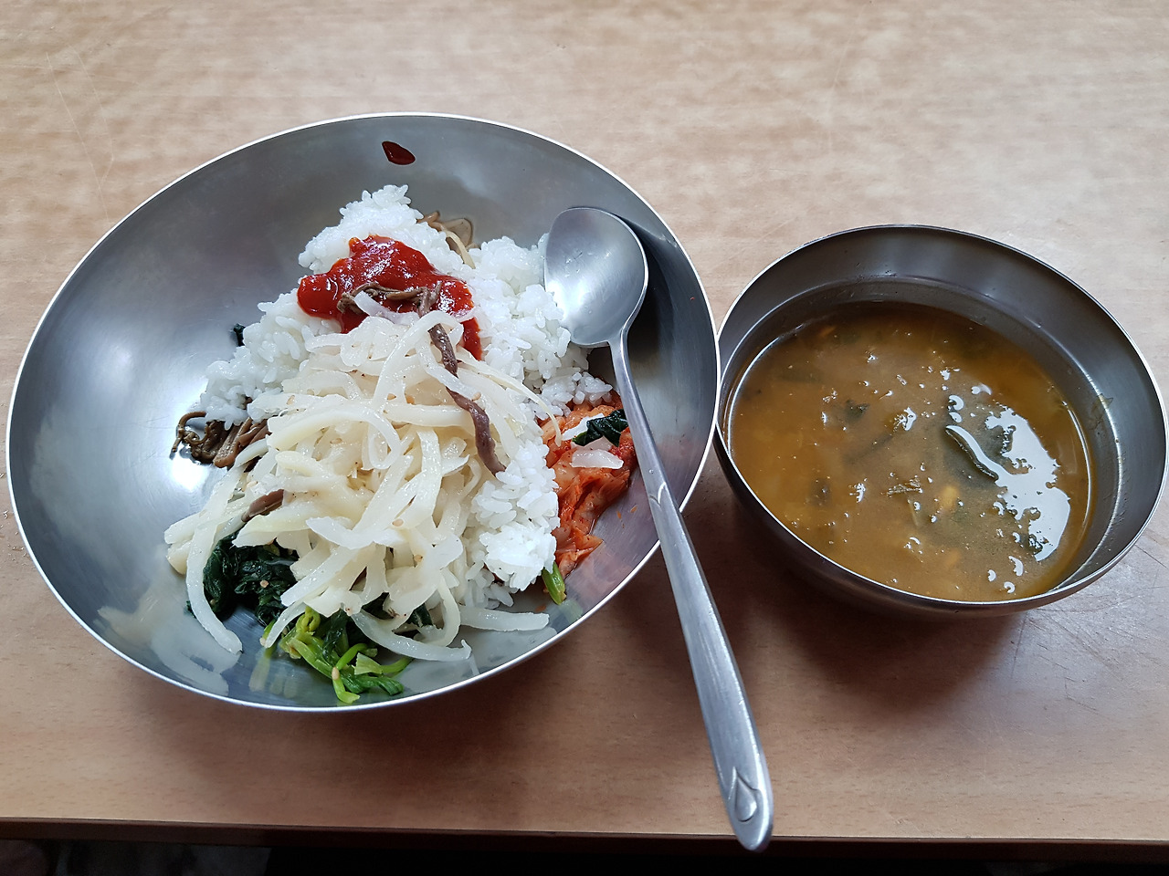베푸는 자들의 수고로움으로 큰 그릇에 담아주는 비빔밥에 국물이 먹음직스럽다