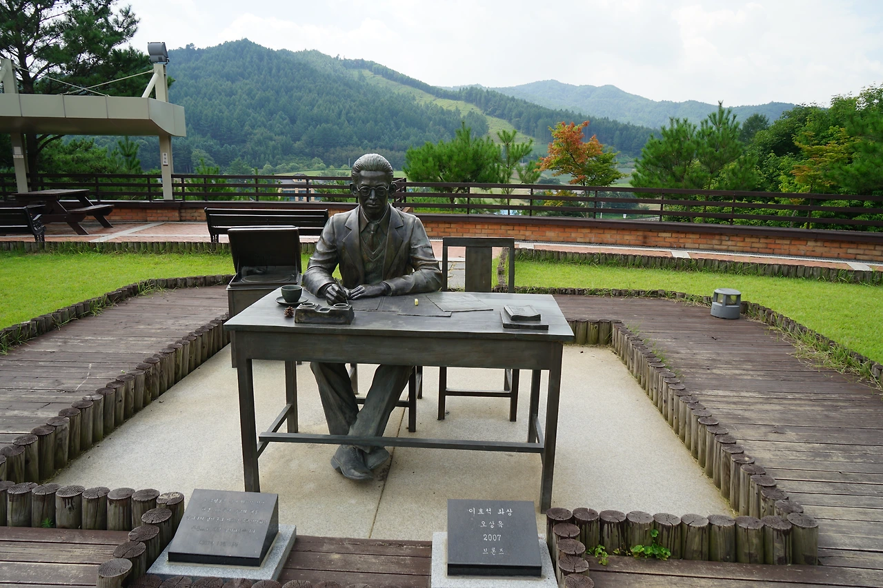 작가의 발자취를 돌아보며 그 순수한 소설속 풍경들을 떠올려 보고 아쉽지만 전시관을 나와 마당 잔디밭에 멋스런 동상의 작가님과 기념 촬영도 했는데 그곳에서 가장 인기 있는 작가님인지라 학생들도 몰려와 사진을 찍어 달라기에 다양한 포즈를 주문하며 네댓 번의 촬영을 해주었더니 보지 않아도 잘 나왔을 거라며 웃는 그 모습은 문학관을 찾아왔다는 사실 만으로도 사랑스러웠다