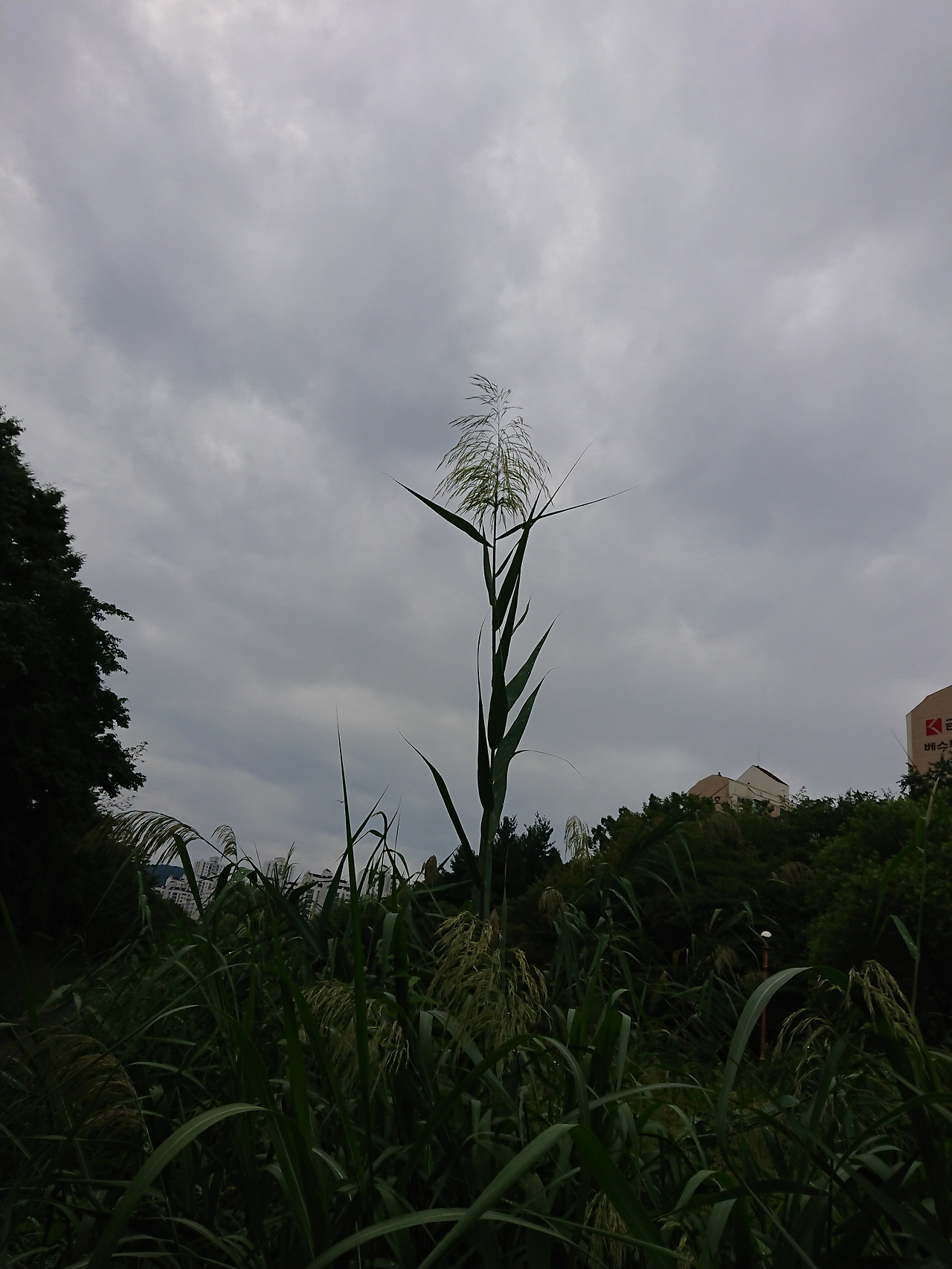 갓 피어난 갈대 하나