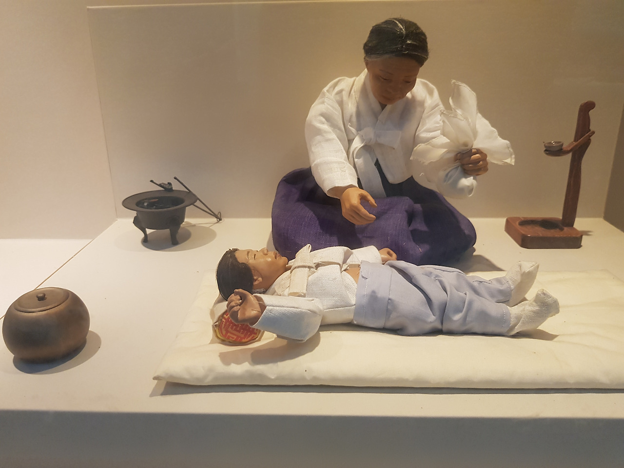 전시관에 전시된 할머니의 치료법 바라보며