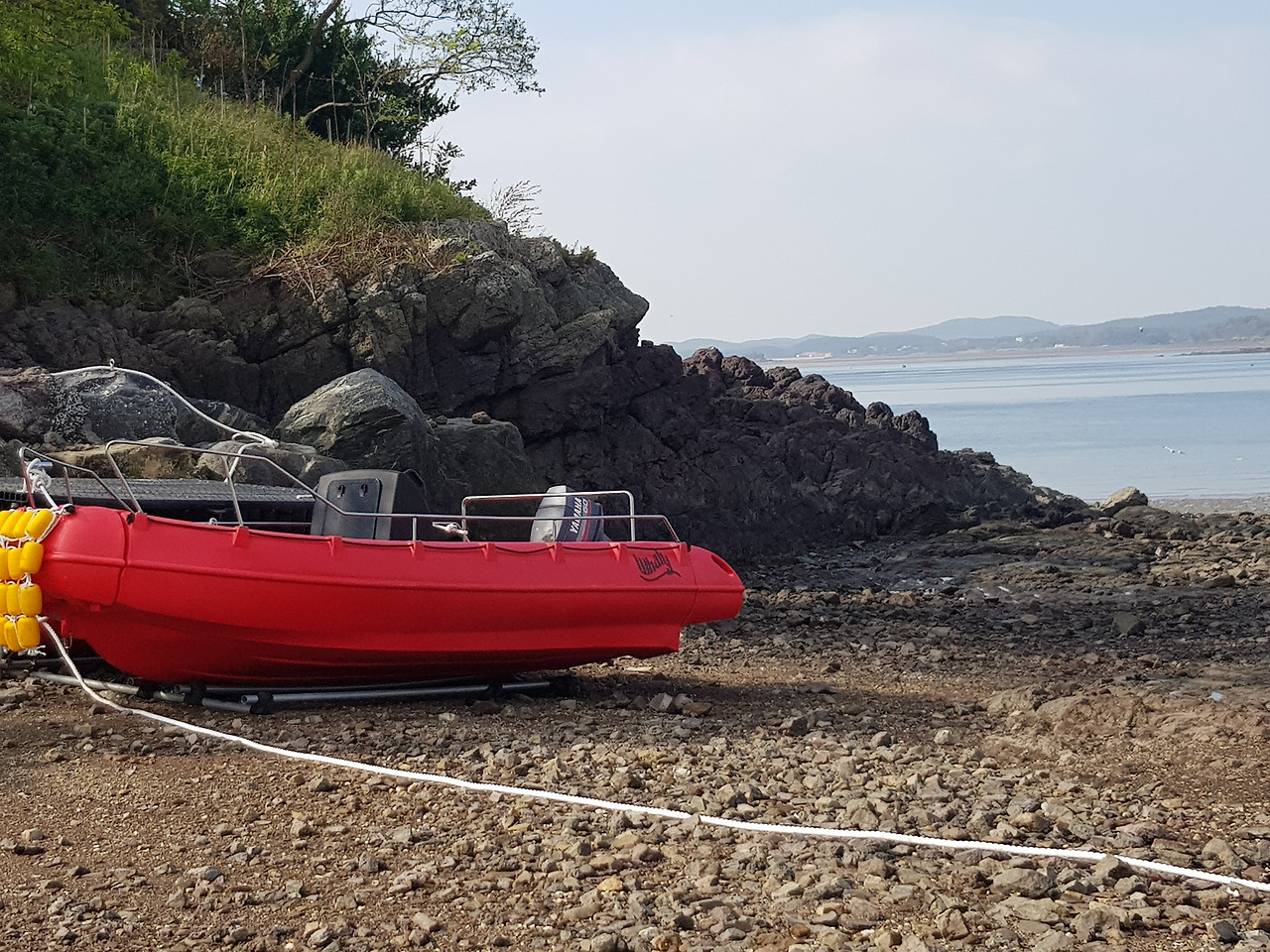 빨간 보트 한 척 바닷물 소리에 귀