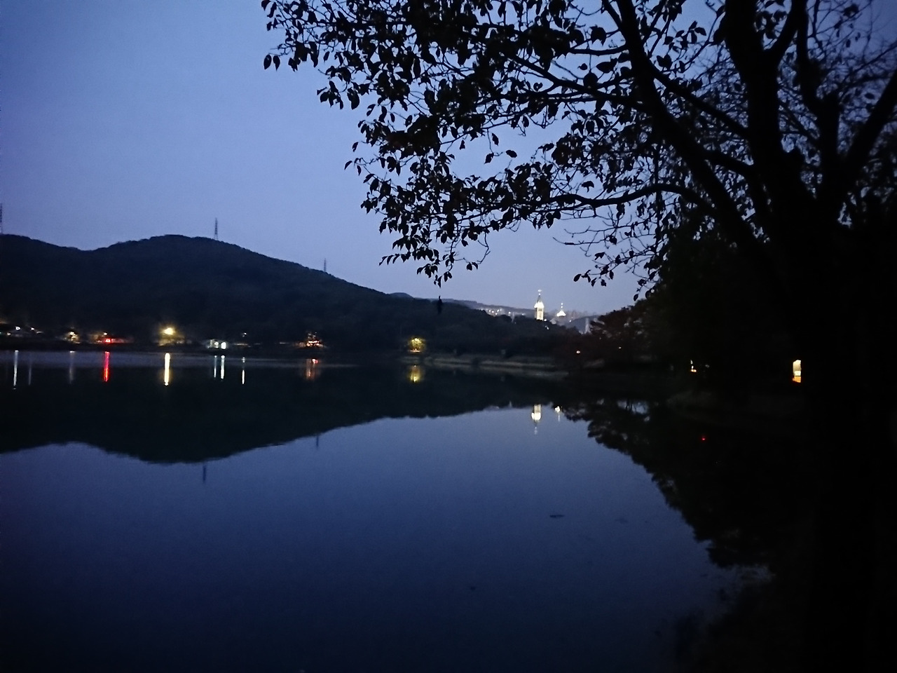 호수는 땅 위 불빛 풍덩 담가 놓고
