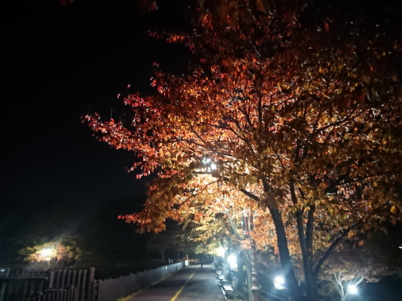 깜깜한 어둠 헤집는 가로등